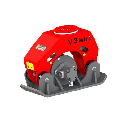 The V10 attachment compactor by MTS is designed for excavators ranging from 21 to 45 tons, making it ideal for handling heavy-duty tasks efficiently. This model is distinguished by its extreme robustness and exceptional performance, providing maximum compaction within seconds. It is particularly effective across various soil types due to its standard setting frequency of 38 Hz, delivering 100% impact force consistently. The unit operates with an oil requirement between 25 to 60 liters per minute and a working pressure of 170 to 250 bar, generating a centrifugal force of 8.5 kN. The V10 attachment compactor is equipped to achieve a high contact pressure range and deeper penetration, thanks to its optimized design, which includes higher side clearance and lower construction height, allowing effective operation even under obstacles and within shoring systems. Additionally, a safety catch hook enhances operational safety, making the V10 a reliable choice for high-performance excavation tasks.