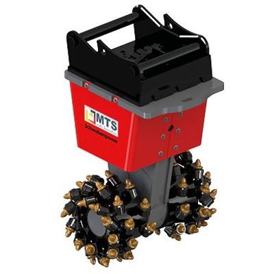 The MTS Rock Cutter F14-630 is an advanced cutting system tailored for efficient performance with large excavators, especially those in the 8-14 ton range. It boasts high torque, ensuring robust power transmission, facilitated by a fully enclosed spur gear unit. The design includes cutting depth limitation features, which prevent the cutter from jamming and promote safe operation under challenging conditions. The gear unit's robust housing provides optimal protection for the motor and hydraulic hoses, enhancing durability. This cutting system comes with a transport frame, provision for easy replacement of chisels, and additional replacement chisels. MTS's rock cutter lineup consists of four models, with more under development, all adaptable with available hydraulic quick-change systems in the market. The wear bushes on the cutting heads, identified as FF90/75, offer a prolonged lifespan through simple bush replacement. In essence, the F14-630 is designed to integrate seamlessly with various excavator classes, providing an efficient, durable, and versatile solution for heavy-duty excavation projects.Quick-Change System