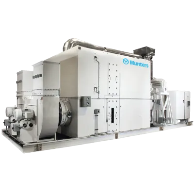 The Munters Zeolite Basic Unit consists of a rotor cassette with seals, motor and casing to house the Munters Zeolite Rotor. Position the hydrophobic zeolite rotor into the basic unit for highly effective VOC abatement system that removes harmful vapors and solvents from the air while saving energy. The Basic Unit is suitable for applications such as manufacturing composites, semiconductors, flat panel displays. it is also ideal for coatings, automotive and aerospace paint finishing, and printing/packaging. It is available in seven sizes for various VOC loading and flow rates ranging from 5,000 to 90,000 cfm. Configure multiple rotors in parallel for larger exhaust volumes to achieve virtually any required flow rate.