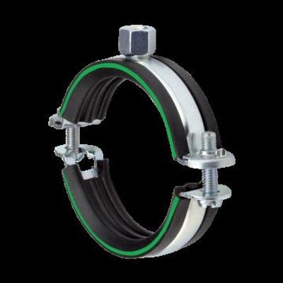 Field of application: Suitable for pipe attachments in industrial areas, Suitable for fastening of drinking water and heating pipes, For indoor use. Advantages: Economical solution due to advanced technology: Practical latching fastener, The 2 locking screws allow adjustment to accommodate a greater variation in pipe diameter, Installation advantages of an one-piece clamp, High safety due to the positive-fit edge hook-in opening, The pipe is free to move during the installation, No inadvertent opening once it has clicked in, due to the safety latching fastener, Tightening bolts with combination, captive cross-head convenient for power driver, DÄMMGULAST® vibration control lining with green identification stripe: average sound level improvement up to 18 dB(A), Optimum handling due to injury-proof design.