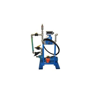Dispensing System: ; 2” x 2” self-priming centrifugal cast iron pump with a 5 hp, 3 phase, 3600 TEFC electric motor (Optional single phase). Optional: NTEP certified, weights and measures approved cast iron 682 TCS meter with a 5-wheel re-settable head with totalizer and ¾ stainless steel air eliminator. Optional: Pump and meter are mounted on a tubular steel stand. This system has sufficient valves and fittings to direct product either through the meter to loadout or back to the tank for recirculation.