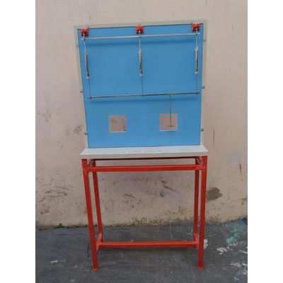 Specification: Apparatus should of consists of a three parallel bar suspension system with elastic beam at their upper and lower ends. The upper ends of the two outer suspension rods are tied to a vertical wooden board while central suspension rod may be tied to the center of another elastic beam supported at two outer ends only. Mild steel Apparatus to be supplied should be complete with a supporting stand and a set of weights.