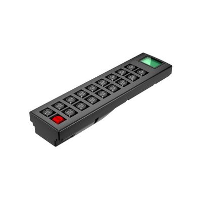 Single handed remote control in pocket size, very flat transmitter with 15 one-stage push buttons.