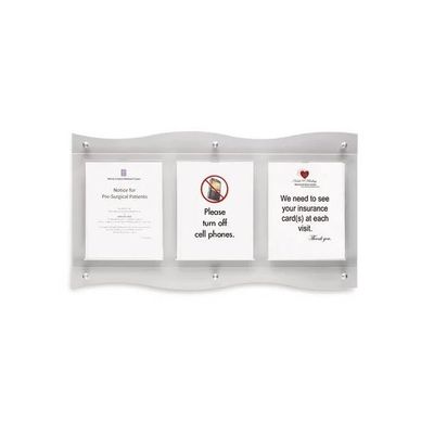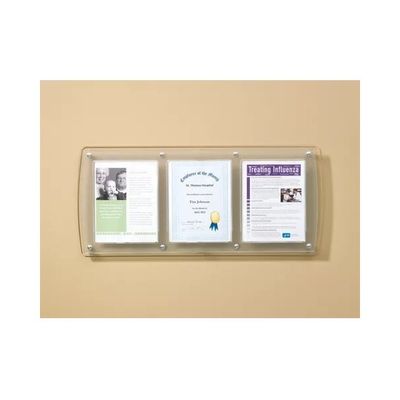 Keep Display of Facility Communication Simple and in Style. Ideal for letter-size, 8.5"W x 11"H notifications, awards, certifications, or any other document needing visual attention, Document exchange made simple with cut-away access on holder backing, Delivered fully assembled and brackets make installation simple and stress-free, Popular triple-frame design available in addition to a space-saving single-frame style, Provide and improve communication with this wall-mountable messaging solution. Stylish design enhances the appearance of any wall. Access to documents is easy, saving time when updating signage.