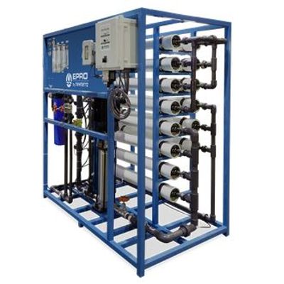 EPRO ™ LMF Series are engineered our from the ground up to provide maximum treatment efficiency in a compact, skidded package. This series of RO systems removes impurities, such as bacteria and dissolved solids, from source water, including brackish water. Available configurations deliver permeate flow rates of 21 to 60 GPM (30,000 to 86,400 GPD) to address the diverse requirements of light industrial applications and commercial users. EPRO LMF Series ROs are also equipped with Variable Frequency Drives (VFD) to allow automated process control and consistent permeate output.