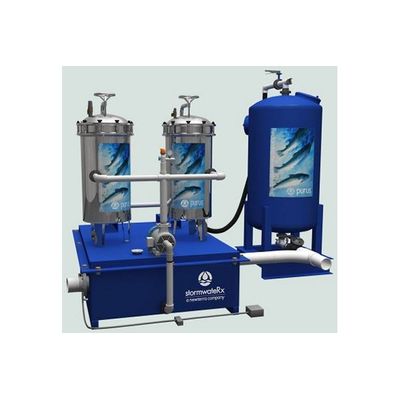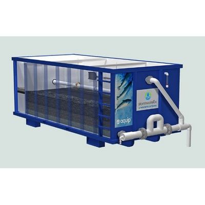 Aquip (uh-kwip) is a patented† media filtration system for enhanced industrial stormwater treatment. Aquip is available in several performance levels, each specifically designed for the removal of stormwater pollutants such as suspended solids, turbidity, heavy metals (including dissolved metals), organics (e.g. BOD, volatile hydrocarbons, PCBs, PAHs), and nutrients (e.g. nitrogen and phosphorus). Targeted metals include copper, zinc, iron, lead, aluminum, nickel, cadmium. Aquip is typically installed above ground with a single pump station in a simple, easy-to-use configuration.