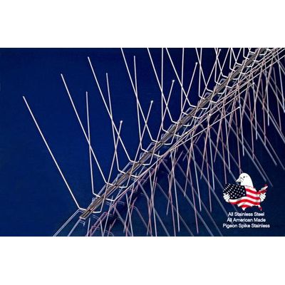 Nixalite`s Pigeon Spike Stainless Steel Bird Spikes are the most affordable all stainless steel bird spike for pigeons and seagulls. One row of Pigeon Spike Stainless can cover up to 7" on a single exposed surface. Each strip is flexible, long lasting, economical and available in 2 or 4 foot lengths. The the all stainless steel bird spikes are 6" wide and have 24 points per foot. Blunt Tip option is available.