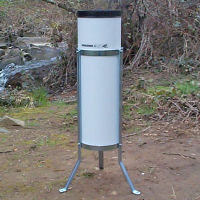 The 260-2510 Standard Rain and Snow Gauge is an all-aluminum rain gauge with a total capacity of 20" of rainfall. The upper portion of the funnel is cylindrical in shape and is turned to a fine edge. Rainwater falling into the funnel is delivered into the receiver. The ratio is 10 to 1, so that 1" of rainfall delivers 10" of water to the receiver. The capacity of the receiver is 2" of rainfall. Any excess overflows into the outer chamber so it can be measured after the quantity in the receiver has been recorded and removed. The gauge can be read to 0.01". When used as a snow gauge, the receiver and funnel are removed. Snowfall is collected in the overflow can and melted for measurement with the receiver and dipstick. A black G-10 fiberglass epoxy laminate measuring stick with both English and Metric markings is included. An optional tripod support is available.