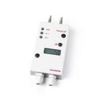 Differential pressure sensor based on static pressure measurement (diaphragm). Configuration and calibration by the transmitter. Ideal for HVAC or clean room applications. The automatic zero point adjustment allows long-term stable, accurate measurements. No hose length compensation necessary. Analog output and switching contact (relay), different measuring ranges are available.