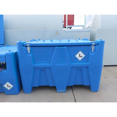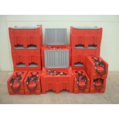 Transportable tank complete with 40 Lt/min dispensing unit. equipped with 12 or 24 Volt electric pump, automatic gun in stainless steel , 4 m of rubber dispensing hose, stainless steel inserts, battery connection clamps, lid with lock. Capacity 220 liters: Dimensions 220 liters : Length 800 mm, Width 600 mm, Height 700 mm, empty weight kg.28. Capacity 440 liters: Dimensions: length 1200 mm, width 800 mm, height 700 mm, empty weight kg.51.