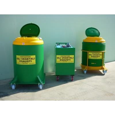 Storage station for run down oil with wheels and internal retaining reservoir, easy to maintain even then full. Precise and safe storage station for run down oils to temporary manage run down oils; it presents a carbon steel reservoir of 3 mm, on pallets, threaded hatch, removable draining filter, watch level indicator. The stainless steel shut-off net, supplied with active carbons for the tank breathing, also avoids dangerous vapours while opening it. Unique printing, reinforced with anti-oil polyethylene, acid resistant, it is treated with anti UV agents to be permantly exposed to the atmospheric agents following the OSHNER, DIN and AFNOR rules.Pallet tanks