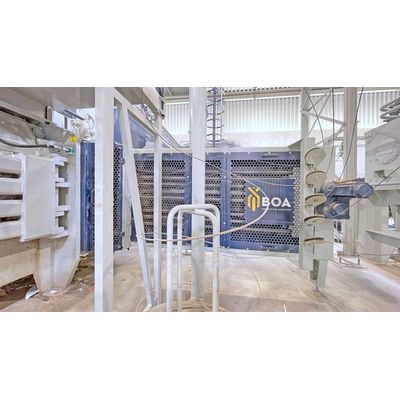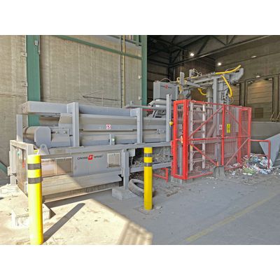 Baler BOA, type 2100 75 (8) PR SD, 90 t press force, with REFUSE ram, HARDOX floor, yoc 1995, with only 9,163 operating hours, drive power 2 x 37 kW. Technical data baler: Manufacturer BOA. Type 2100 75 (8) PR SD. Year of manufacture 1995. Operating hours 9,163 hours, as of June 23. Pressing force main press 90 t. Operating pressure 280 bar. Dimensions of feed chute 1,620 x 1,080 mm. Filling volume / pressing cycle 2.4 m³. Bale dimensions 1,100 x 1,100 mm, length variably adjustable 800 up to 1,600 mm. Drive power 2 x 37 kW. Connected load 92 kW. Tying system 4-fold vertical, fully automatic, prepared for 8-fold cross binding. Throughput rates for quality:. B12 / B19 approx. 10 t/hour, bale weight up to 1200 kg/bale. Foil approx. 10 t/hour, bale weight up to 800 kg/bale. Hydraulic oil tank capacity 1,500 L. PLC control system Siemens SIMATIC S7-1500, renewal in 2020. Press dimensions built up with hopper 15,000 x 6,000 x 6,500 mm (l x w x h).