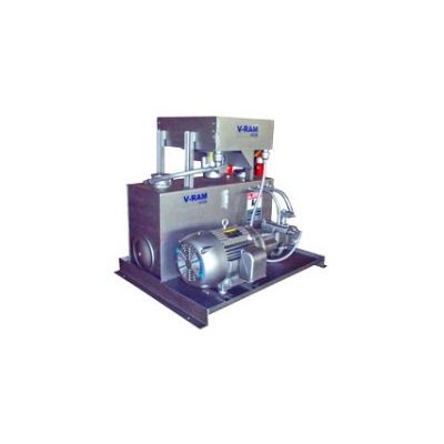 The V-RAM Sludge Pumping Systems are designed for high pressure, high volume and high abrasive sludge pumping 24 hours a day, seven days a week. The Sludge Pumping Systems are used to move sludges with a 12 to 55% solid ratio with pumping volumes ranging from 1 GPM to 428 GPM. Each system is completely designed for particular application and includes the pumping module which includes the double pumping chambers with integrated water chamber and four passive ball valve system, hydraulic unit, double screw in feed conveyor (auger) and control package.