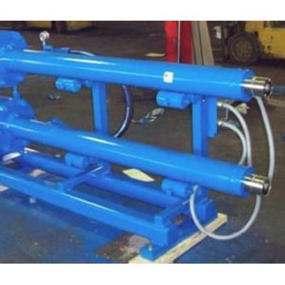 Our Sludge Pumping Systems utilizes two standard type hydraulic cylinders. The hydraulic cylinders are connected together at one end with hydraulic lines, so that when one cylinder is extended the other is forced to retract. The cylinder balance is monitored and maintained by the control system and a simple control valve. The monitoring is accomplished with linear transducers that are mounted into the end of each cylinder.