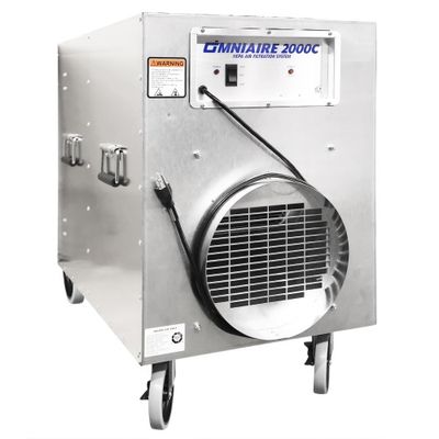 The OmniAire 2000V is a popular, medium-sized negative air machine with variable speed control which produces 300 to 1900 CFM and weighs only 110 lbs.