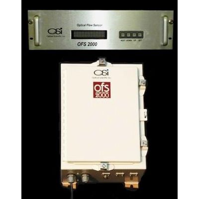 The OFS-2000 has a range of 0-40m/sec and is the only flow sensor that gives a true non-contracting cross-stack flow measurement of the process. OSi`s patented Optical Flow Sensor (OFS) makes drift-free measurements across the entire stack, duct or pipe diameter and calculates an accurate average flow reading. It is the only flow sensor that gives a true non-contacting cross-stack flow measurement of the process. The OFS uses our EPA Method 14 approved optical scintillation technology. The optical scintillation technique relies on advanced Digital Signal Processing (DSP) electronics to "see" and measure the movement of turbulence found in a gaseous flow stream to provide highly accurate, path-averaged air velocity measurements. The accuracy of the OFS has been proven both in NIST`s wind tunnel and in numerous real-world installations.