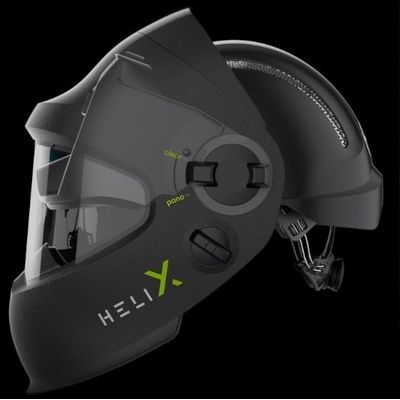 The new slide-up welding helmet with panoramic field of view and Crystal Lens Technology. With the helix CLT, optrel offers a welding helmet for work under the most difficult conditions. A slide-up helmet with internal ADF that has all the technical features of an optrel helmet: Panorama XXL field of view, ShadeTronic®, Fadetronic, rechargeable battery unit with charging via welding arc and 5-point multi-detection sensor technology.