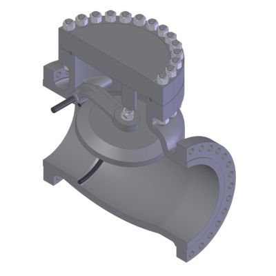 Cast Steel, Swing Type disc, renewable body seat ring, bolted body-to-cover connection. Swing check valves are best fit for horizontal pipeline installation. Special cases can be evaluated and developed upon request. For small valve sizes, a vertical installation (only with upward flow) is still possible, but for heavier weights of discs chattering issues can occur. Dampers or counterweight shall be then provided. Cast steel, swing type disc, renewable body seat ring, bolted body-to-cover connection.
