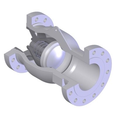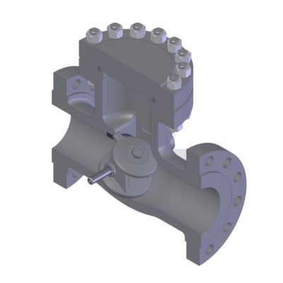 Cast steel, balanced disc, renewable body seat ring, bolted body-to-cover connection. Tilting disc check valves (top entry) are best fit for horizontal pipeline installation, thus they can be used even in vertical piping with upward flow. Check anyway with ORION if the valve is suitable for the desired installed position.