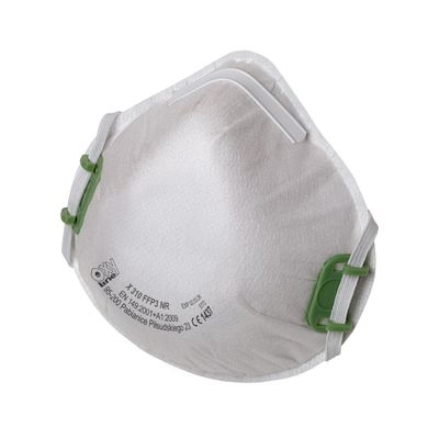 The half mask respirator X 310 FFP3 NR half mask is a non-sterile single-use medical product, type II R. It complies with the requirements of EN 14683:2019 with a limited duration of use, up to a maximum of 8 hours. It has a bacterial filtration efficiency (BFE) of ≥ 98.0 %. The respirator is approved for use in medical environments where there is a risk of splashing bodily fluids.