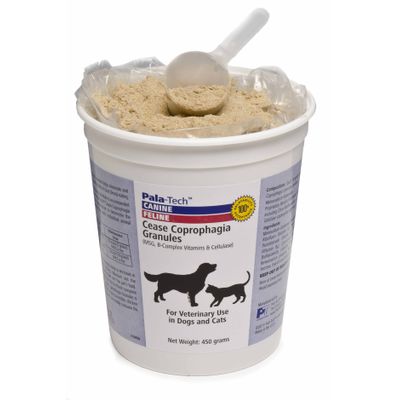 A supplement to help eliminate and prevent coprophagia, the unhealthy habit of stool (feces) eating. Package sizes: Canine, Feline - 450 grams/container. (MSG, B-Complex Vitamins & Cellulase).