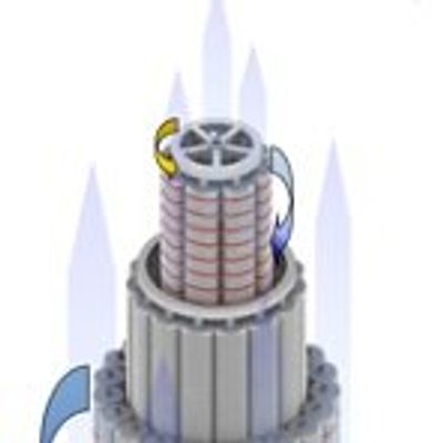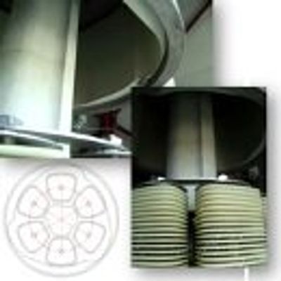 The selected INCLINATION of filter discs in adjacent filter modules, fixed on rotating ring(s), results in turbulent flow with strong VERTICAL direction - over the complete membrane surfaces even in installations with large filter area. HELIX4D leads to extensive exchange of concentrations, even in high viscous fluids and substance content.
