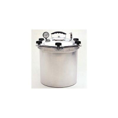 The TM1250C10 portable autoclave is for use with suitable burner or electric heater. Capacity approximately 16.6 Liters, normal operating pressure 20 psi (138 kPa). Equipped with pressure gauge range 0-30 psi, 212° to 274° F; cast aluminum alloy. Spring-loaded relief valve allows pressure adjustment and venting of trapped air. In event of failure, safety plug releases pressure at 35 psi (241 kPa). Cover cannot be removed while chamber is pressurized. Has removable aluminum carrier, 11 ¼” i.d. x 10 ½” deep, supported on footed, perforated aluminum plate.