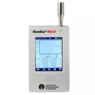 Sensitivity: 0.2 - 10 µm - Effective Troubleshooting from a handheld particle counter. The HandiLaz®Mini II handheld particle counter from Particle Measuring Systems is ergonomically designed to fit in the palm of your hand. Rugged and dependable, this small-footprint, lightweight instrument provides tremendous value for cost-conscious users who want a reliable, easy-to-use, handheld particle counter.