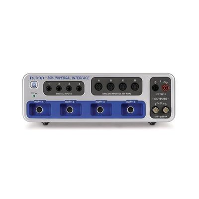 The 850 Universal Interface is the most powerful educational lab interface in the world and features the most ports, fastest sampling rates, and unmatched functionality. It can be used in place of several pieces of lab instrumentation, including oscilloscopes, power supplies, timers, and function generators. It features a USB connection and is only compatible with Capstone software.