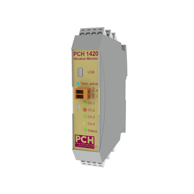 The 4-channel PCH 1420 is an advanced vibration monitor which provides a wide range of real-time vibration data, remote data access and local alarms. You can use the PCH 1420 vibration monitor as a stand-alone solution or connect it to your SCADA or PLC system.