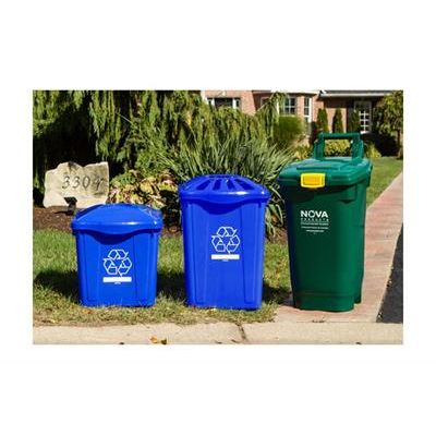 Lid design is the quickest and easiest to secure and remove. Vented design keeps recyclables contained at the curb and prevents the lid from blowing away when removed. Solid lids keep recyclables contained and protected from the elements. Custom colours and logo imprinting available. Fits 16 Gallon and 22 Gallon Nova Products recycle bins.