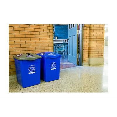 Available in round opening or combination opening. Bilingual sticker packages available. Custom colours and logo imprinting available. Custom colours and custom logo imprinting available. Fits 16 Gallon and 22 Gallon Nova Products recycle bins.