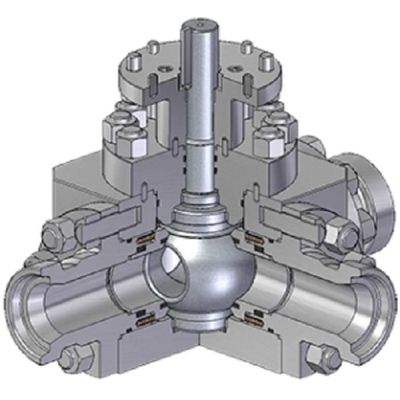 Three-way ball valves is a very versatile design which can be used for different applications by combining the T or L port with dedicated actuation. The valve design is based on a solid forged block with three closures and a trunnion mounted ball.