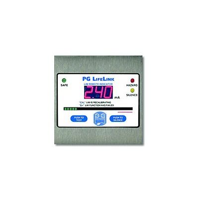The PG LIFELINK Model DRA-1S Remote Annunciator contains all the same indication and functionality found on the front panel of the Mark IV LIM. Digital and analog hazard current displays audible and visual alarm annunciation, silence feature and remote operation of self-test feature are all included. Even system error codes are displayed, aiding in troubleshooting efforts. Some states require that all LIM remote units include a digital hazard current display. Check your local codes to see if this applies.