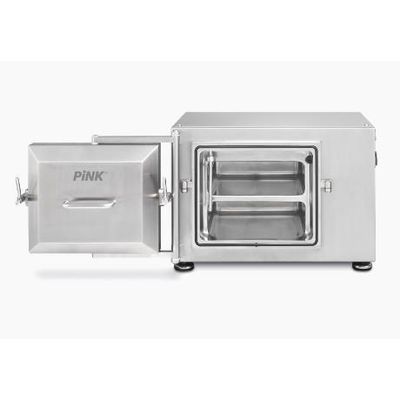 PINK’s VSD-e is a compact, high-grade vacuum drying oven designed to provide users in industry, science and research with a high performance, safe and clean system for the laboratory. Thus, PINK is making the advantages of the VSD vacuum drying oven with its GMP/FDA-compliant design available for smaller laboratory applications as well. The VSD-e has electric contact heating with an integrated control. Its operation only requires a plug socket and a vacuum device.