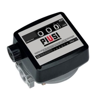 The PIUSI K33 and K44 are mechanical flow meters suitable for the monitoring of lubricating oil. PIUSI K33 as a mechanical flow meter has a partial indicator with 3 digits (max. 999 litres), total 6 digits, while PIUSI K44 has a partial indicator with 4 digits (max. 9999 litres), with a total of 7 digits.