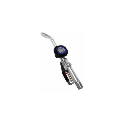 High flow rate oil nozzle with oval gear electronic flow meter in acetal resin. The oval gear metering system allows for high metering precision with low pressure losses. The high flow rate of the flow meter combined with the highly ergonomic nozzle and non-drip tip (available in both rigid and flexible versions) ensures clean, quick and safe delivery.