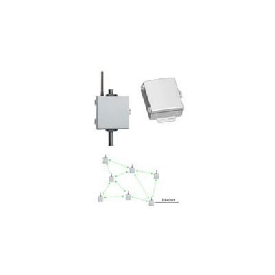 applications. With `out the box` auto mesh wireless functionality, IWS nodes can be easily installed at a remote location and connected to standard sensors, supporting 4-20mA or 0-5V. Either through a direct wireless connection or automatically hopping through a series of other IWS nodes, the sensor data is relayed back to the IWS Hub for termination over Ethernet to the IWS Management Server application for display, logging and alarm management.