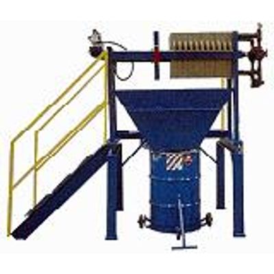A filter press is used anywhere there is a need to separate heavy solids from a liquid. Most times the slurry will be pumped from the bottom of a clarifier cone or a sludge thickening tank into a filter press. The end result of the particulate accumulated from a filter press becomes a filter cake. Filter press with polypro plates for solids removal ranging from .5-100 cubic feet capacity.