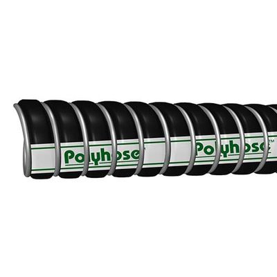 The PH801 - Poly - Tanker Hose by Polyhose is engineered for the efficient transfer of petroleum products via road and rail tankers, as well as in loading gantries. It is constructed using polypropylene fabric and films, with a PVC-coated fabric cover, and features galvanized mild steel (MS) wires both internally and externally, enhancing its durability. The hose is notable for its black color with a distinctive white stripe, serving both functional and aesthetic purposes. Complying with EN 13765 TYPE 1:2010 standards, the hose supports a temperature range from -30°C to +80°C, making it versatile for different environmental conditions. This hose provides robust suction and discharge capabilities, specifically catering to industrial requirements in handling petroleum product transfers. It exemplifies Polyhose's commitment to producing high-quality energy conveyance solutions.SS CORRUGATED