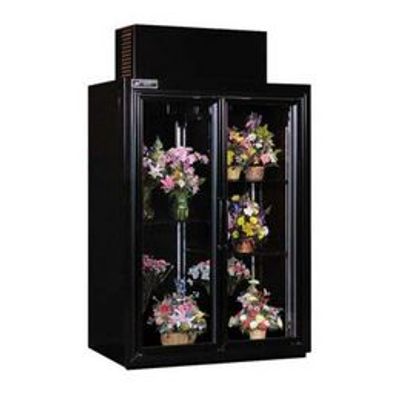 Top-mount swinging door floral refrigerators come in three different sizes. They have self-closing swinging doors with heated frames and jambs, welded exteriors with powder coat finish, and switch-controlled vertical LED lamps.