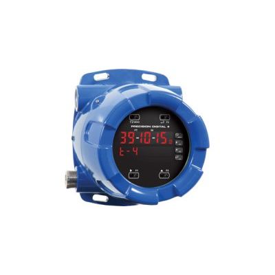 The PD8-6001 is an explosion-proof, multi-purpose, easy-to-use digital process meter featuring a bright, highly visible main display with convenient Feet & Inches designations, for use in hazardous areas. It is ideal for level applications requiring a comprehensible display, as it shows feet, inches, and fractions of an inch to the nearest sixteenth of an inch. It accepts current and voltage signals (e.g. 4-20 mA, 0-10 V). Three of the front panel buttons can be custom-programmed for a specific operation. The analog input can be scaled to display the process in two different scales. The main display can indicate level in feet and inches with printed feet and inches designations, and the secondary display could be used to indicate some other scale, such as the volume in gallons or liters. SafeTouch® through-glass buttons, function keys, and Modbus® RS-485 serial communications are just a few of the standard features found on the PD8-6001.