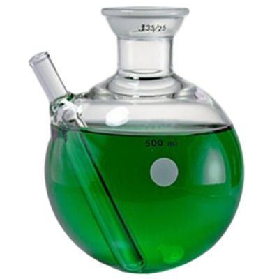 500ml distillation flask with 35/25 top joint and heavy round wall bottom for Thermowell. 901-1160-301 Borosilicate Glass. 901-1160-302 Quartz.