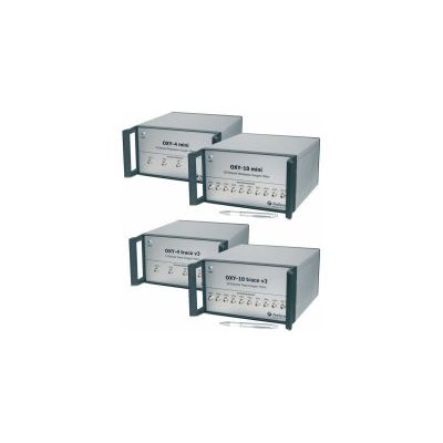 The OXY-4 mini, OXY-10 mini, OXY-4 trace and OXY-10 trace are precise multi-channel fiber optic oxygen transmitters. They are used with oxygen sensors based on a 2 mm optical fiber. A PC is connected to run the easy-to-use software. OXY-4 mini and OXY-10 mini are used for sensor coatings type PSt3 (0 - 100 % oxygen). OXY-4 trace and OXY-10 trace additionally work with the trace oxygen sensor coating type PSt6 (detection limit 1 ppb, 0 - 4.2 % oxygen).
