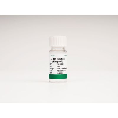 G418, an aminoglycoside antibiotic, is the most commonly used resistance screening reagent for stable transfection in molecular genetic experiments.G418 can interfere with the function of 80S ribosomes and affect protein synthesis in eukaryotic cells. It is mainly used in mammalian, plant or yeast cell selection.