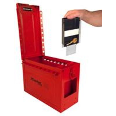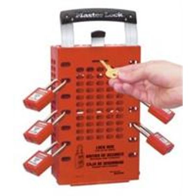 Secure each lockout point on a piece of equipment with just one designated lock. Capture the keys from those lockout points by placing them in the lock box. Each authorized employee locks one personal safety lock onto the box, removing them only when their work is complete. Exclusive Latch Tight feature ensures that keys cannot be accessed until the last lock is removed. Durable powder-coated red finish with an easy-to-grip, ergonomic handle. Lockout message in English, Spanish and French communicates to all workers. Accommodates up to 12 workers, more with the use of lockout hasps.