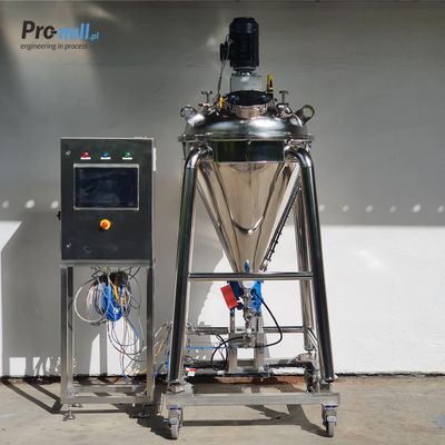 Pro-mill’s liquid phase bioreactor is a compact system built on a SKID frame designed to carry out biotechnology processes on liquid substrates on a scale from laboratory to industrial. For this reason, fermenters are widely used in the biotechnology, cosmetics and food industries. Due to the nature of the processes carried out, the fermenter must remain sterile to eliminate the possibility of infection, and must be equipped with an advanced system for measuring and regulating process parameters.
