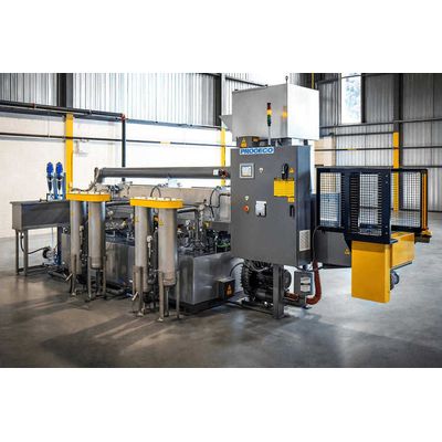 PROCECO`s ADT tank lines are multi-stage systems designed for aqueous-cleaning, pre-treatment, and surface treatment by wet dip processes. Each immersion system is custom-engineered for specific applications and workpieces. PROCECO`s ADT immersion lines accommodate a range of processes in the aviation, automotive, and general manufacturing industries, including parts degreasing, anodizing, chemical pickling, and manganese phosphate conversion coating (Lubrite®). PROCECO provides complete solutions from initial concept to turnkey installation. Tailored to your exact needs, our systems offer automation, process control, dynamic scheduling, and automatic part transfer hoists. Additional processes, such as ultrasonics, agitation, turbulation rotation, and spray cleaning can be integrated into any immersion system to enhance parts cleaning and surface treatment. This flexibility makes PROCECO`s ADT immersion lines ideal for any parts manufacturing environment.
