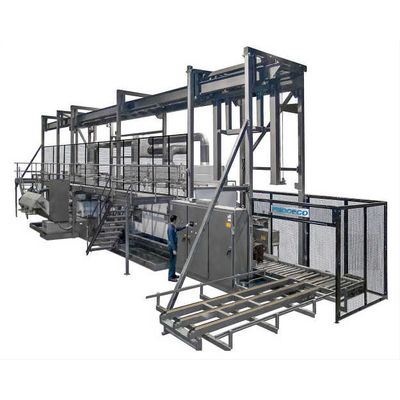 The TYPHOON®-OCW incorporates a powered monorail overhead conveyor to move parts through each process. The machine design saves floor space by hanging long parts from the conveyor vertically rather than conveying them horizontally. The PROCECO TYPHOON®-OCW monorail industrial parts washer can be engineered for parts cleaning, surface pre-treatment, and treatment processes such as phosphating and Lubrite®. Because of PROCECO`s modular design approach, various standard modules can be added together to create a multi-stage process. Available modules include recirculated spray wash and rinse, immersion, ultrasonics, drying, and cooling. To further customize a monorail industrial parts washer to meet your specific application needs, you can choose to incorporate several other options, such as automatic loading, custom designed parts-holding fixtures, and cleaning solution filtration.