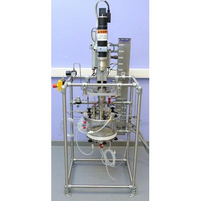 For early stage filtration and drying kinetic studies of API / NCE, scale up and process validation. Nutsche filter for filter cakes between diameter 8-20 cm. Includes a vacuum system, jacketed dust filter, glass condenser, condenser receiver vessel, bypass, vacuum pump and process pressure control.